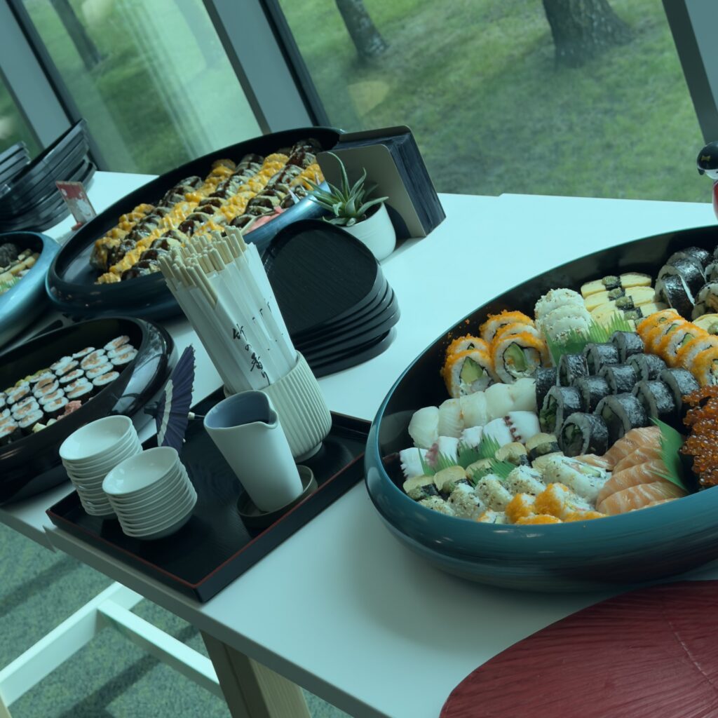- In addition to sushi, we offer Japanese savory dishes, desserts, snacks, drinks (tea, soft drinks, sake, umeshu, craft beer), and—if desired —decor and service in Japanese style.
